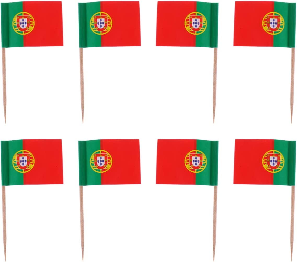 100pcs Small Portugal Flags on Stick Small Portuguese Toothpick Flags Mini Stick Flag Cupcake Toppers Handheld World International Flag for Bar Sports Events Festival