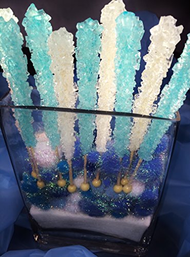 12 Light Blue, 12 White, 24 Rock Candy Sticks in Total - Blue Is Cotton Candy Flavored, White Is Natural Sugar Flavored. Free E- Book Created By Candy Buffet Store, How to Build a Candy Buffet Table!