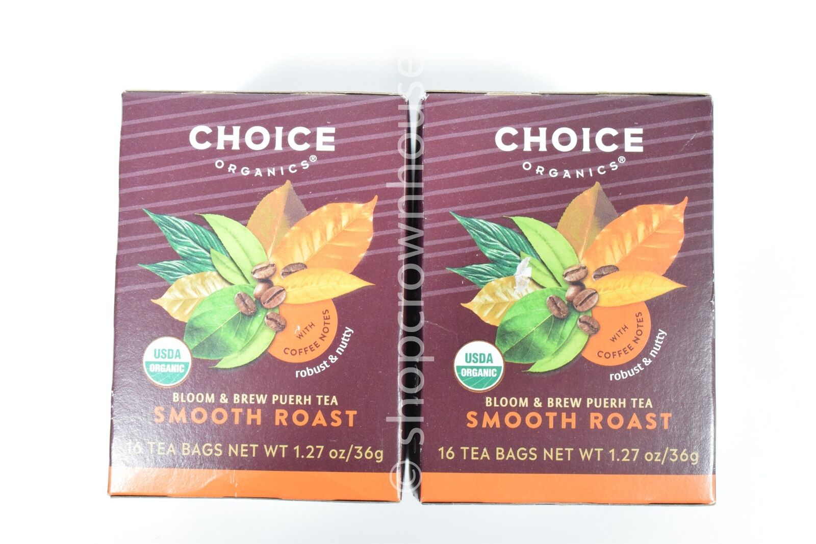 2 Choice Organics SMOOTH ROAST Pu-erh Tea 16 Bags 32 Total 1.27oz 08/25/2025