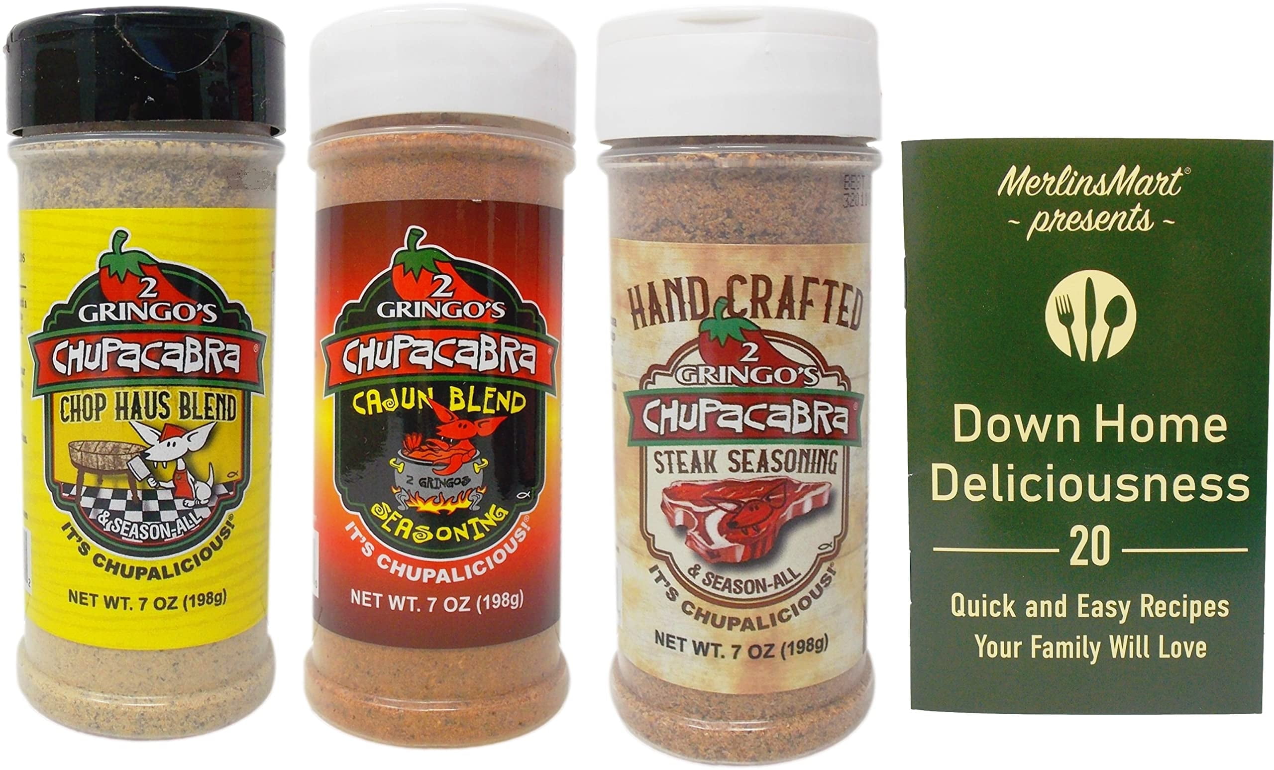 2 Gringo's Chupacabra Seasoning Rub 3 Flavor Variety (1) Each: Steak & Season-All, Chop Haus Blend, Cajun Blend (7 Ounces) + MerlinsMart Zine