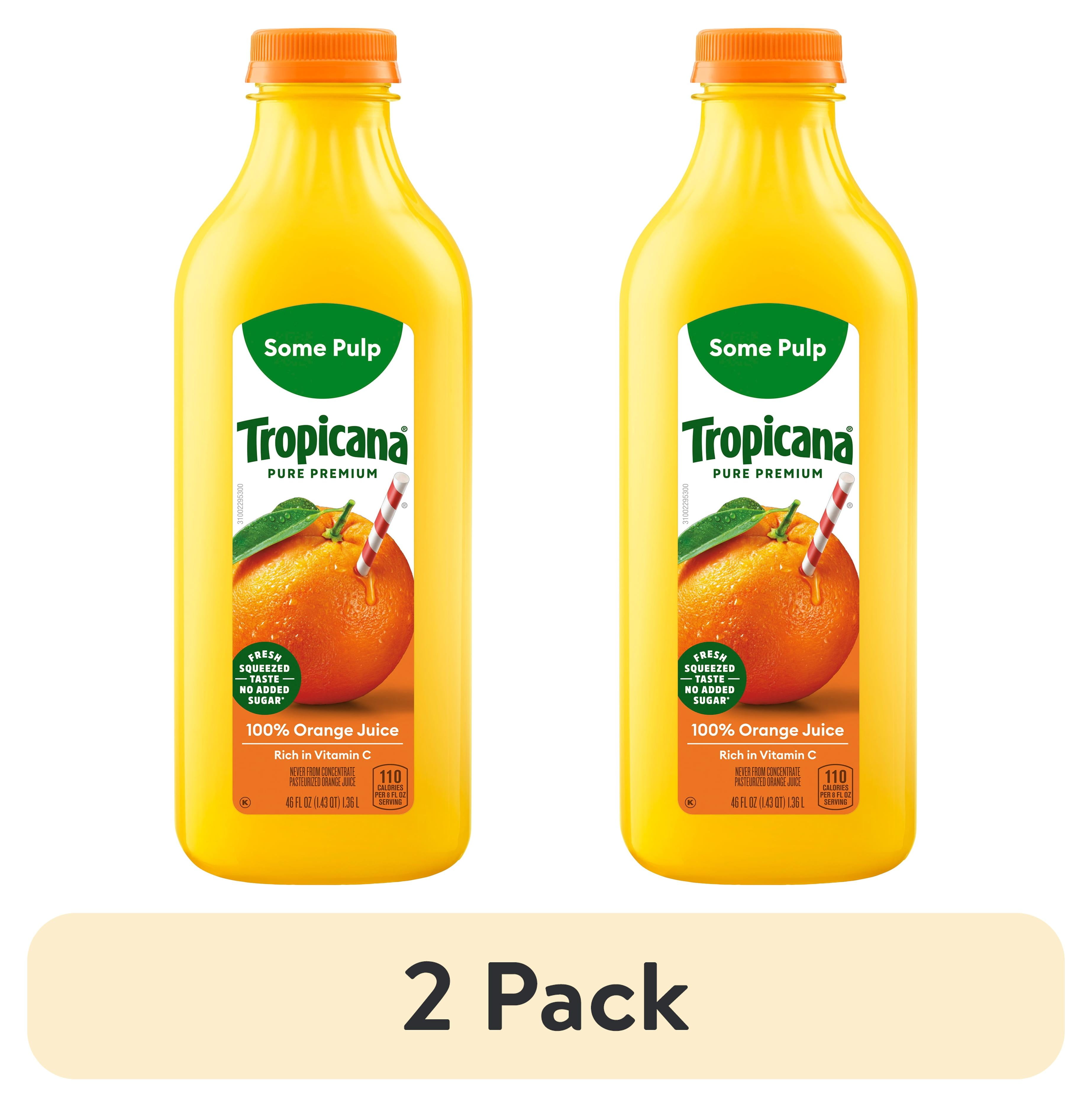 (2 pack) Tropicana Pure Premium 100% Orange Juice Original, Some Pulp, No Sugar Added, 46 fl oz