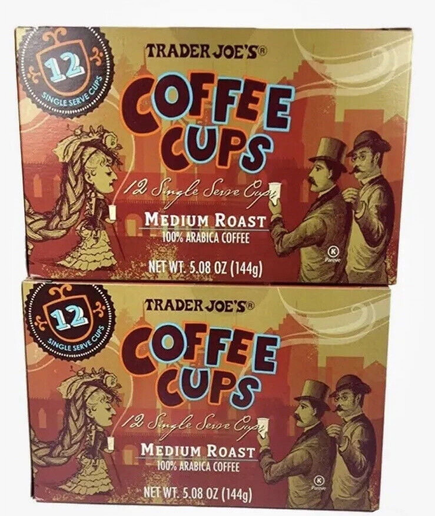 2 Packs Trader Joe's Coffee Cup Medium Roast 12 Cups 5.08 oz Each Pack