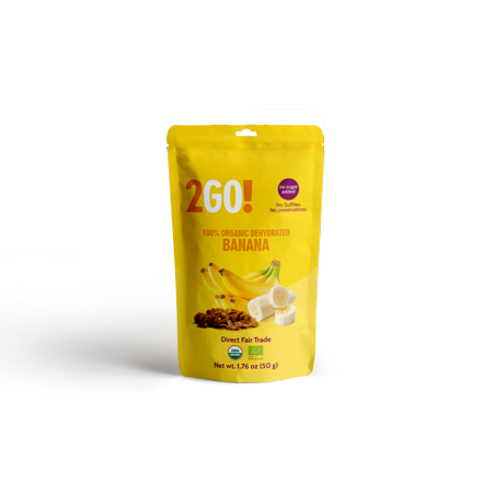 2Go! Organic Dried Banana - 1.76 oz (Pack of 12) - 100% All-Natural, Dried Bananas - Unsulfured - Direct Fair Trade Fruit - from Colombia