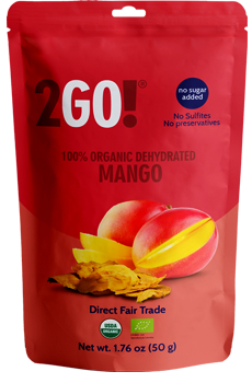 2Go! Organic, Dried Mango Slices - 1.76 oz (Pack of 12) - No Sugar Added - All-Natural Mangoes - Raw - Unsulfured - Direct Fair Trade Fruit - from Colombia