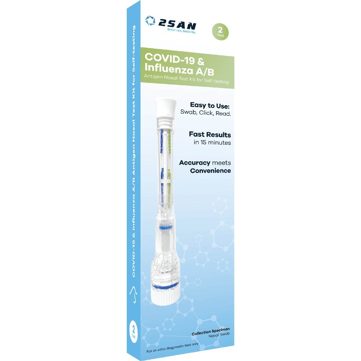 2SAN Nasal COVID-19 & Influenza A/B Test 2 pack
