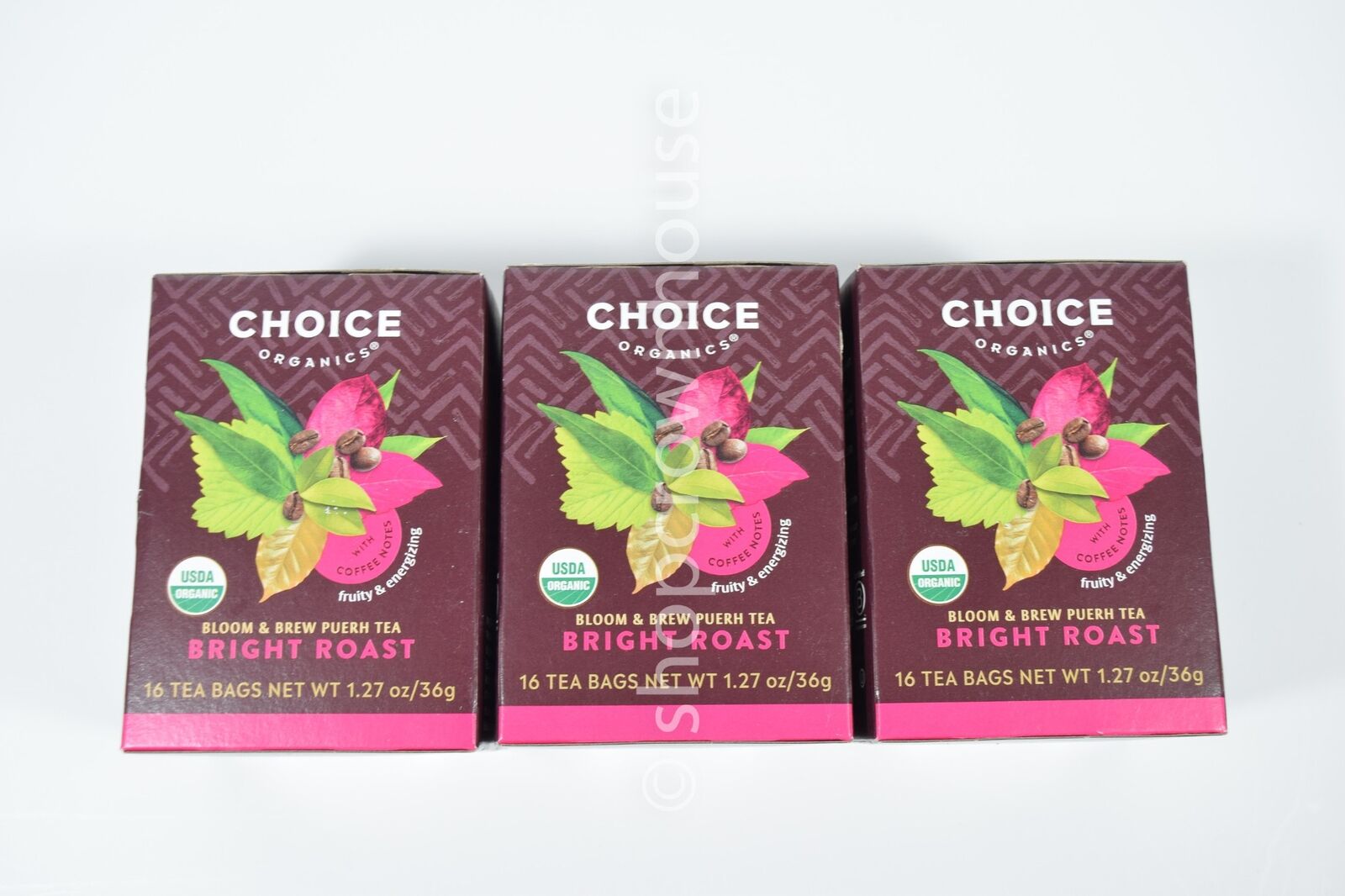 3 Choice Organics BRIGHT ROAST Pu-erh Tea 16 Bags 48 Total 1.27oz 08/26/2025