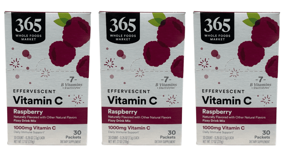 3-Pack 365 Whole Foods Market, Vitamin C Effervescent Drink Mix Raspberry 90 Ct