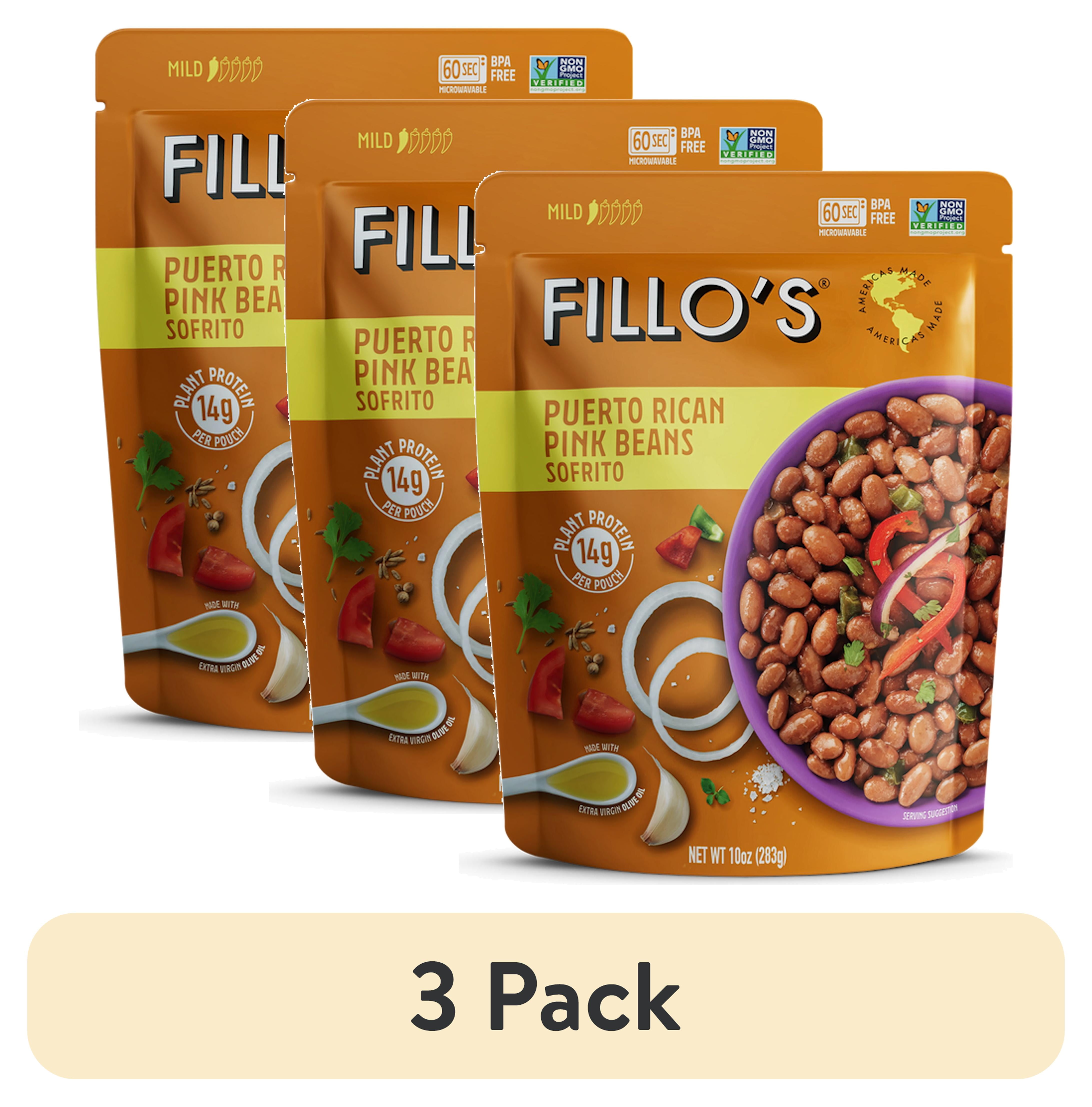 (3 pack) FILLO'S Puerto Rican Pink Beans Mild Spice - Single Pouch, 10 oz