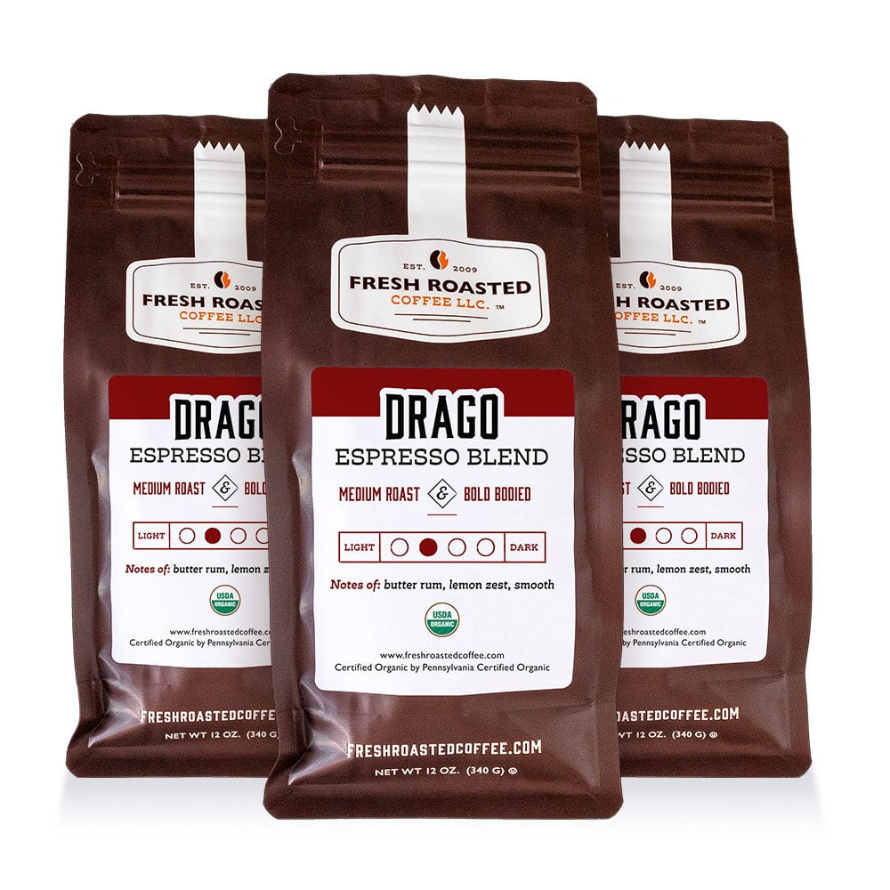 3 pack Fresh Roasted Coffee, Organic Drago Caf Blend Coffee, Medium Roast, Ground, 12 oz