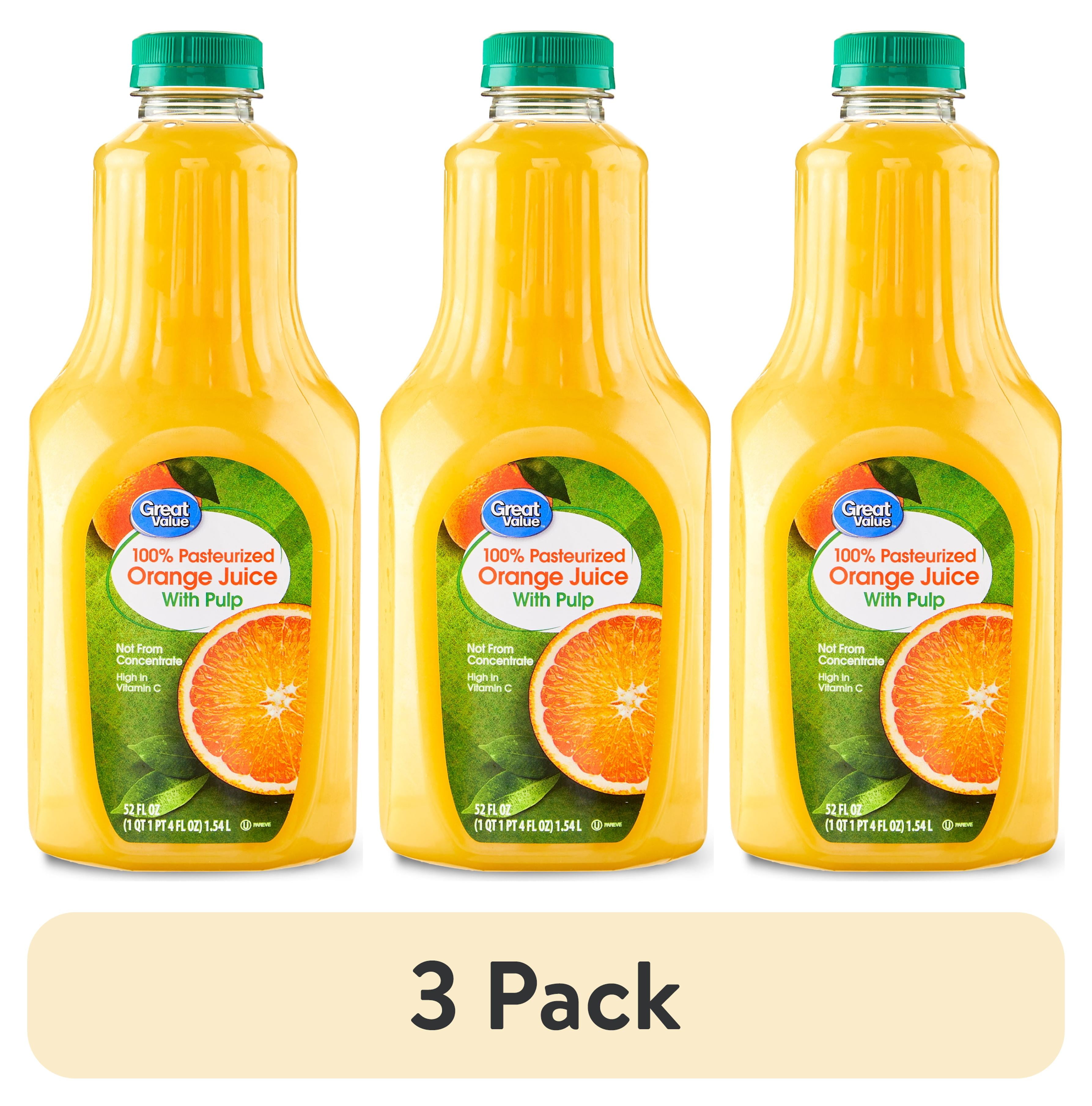 (3 pack) Great Value 100% Pasteurized Orange Juice with Pulp, Featuring Stitch, 52 fl oz