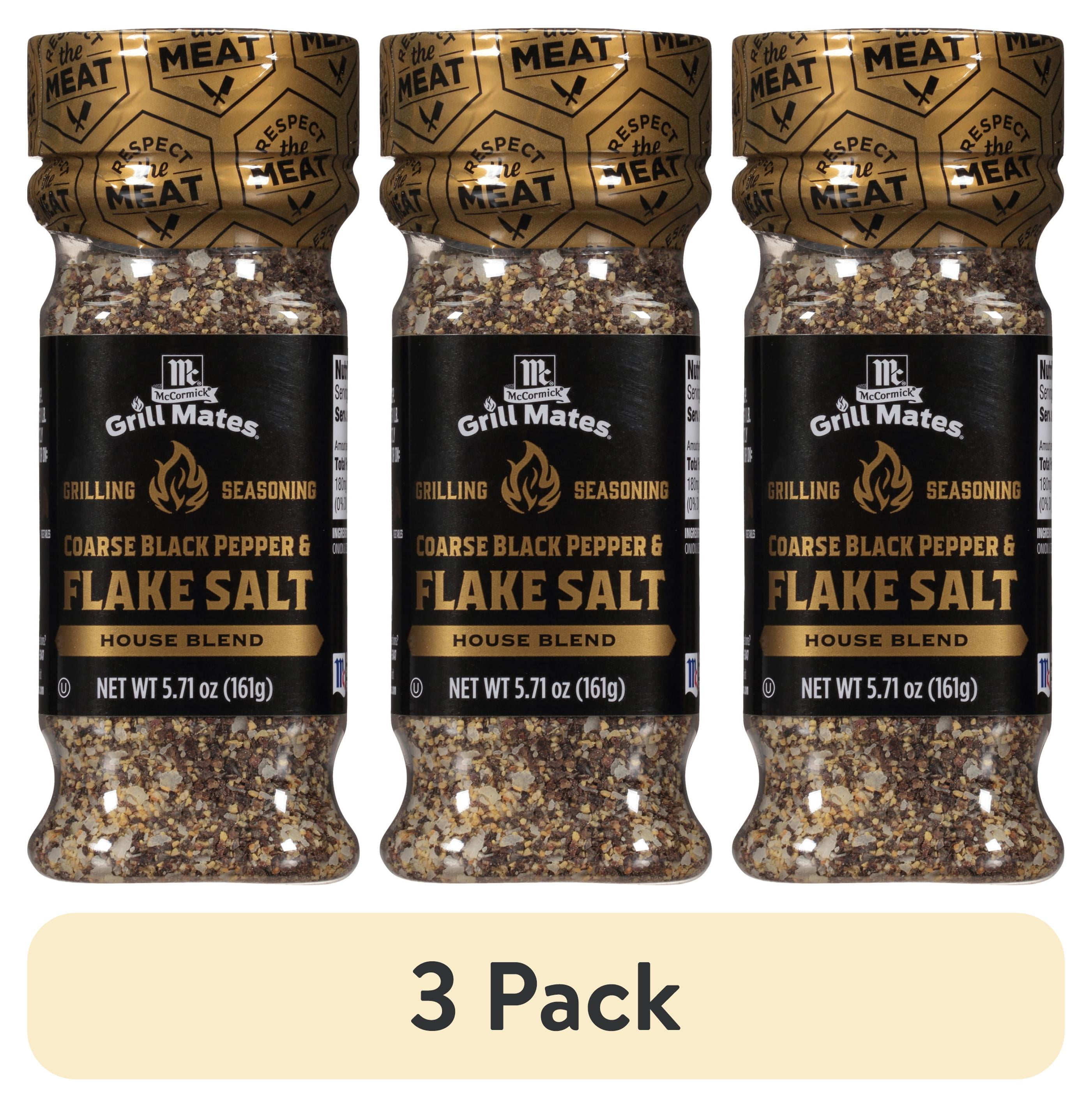 (3 pack) McCormick Grill Mates Gluten Free Coarse Black Pepper & Flake Salt Seasoning, 5.71 oz Bottle