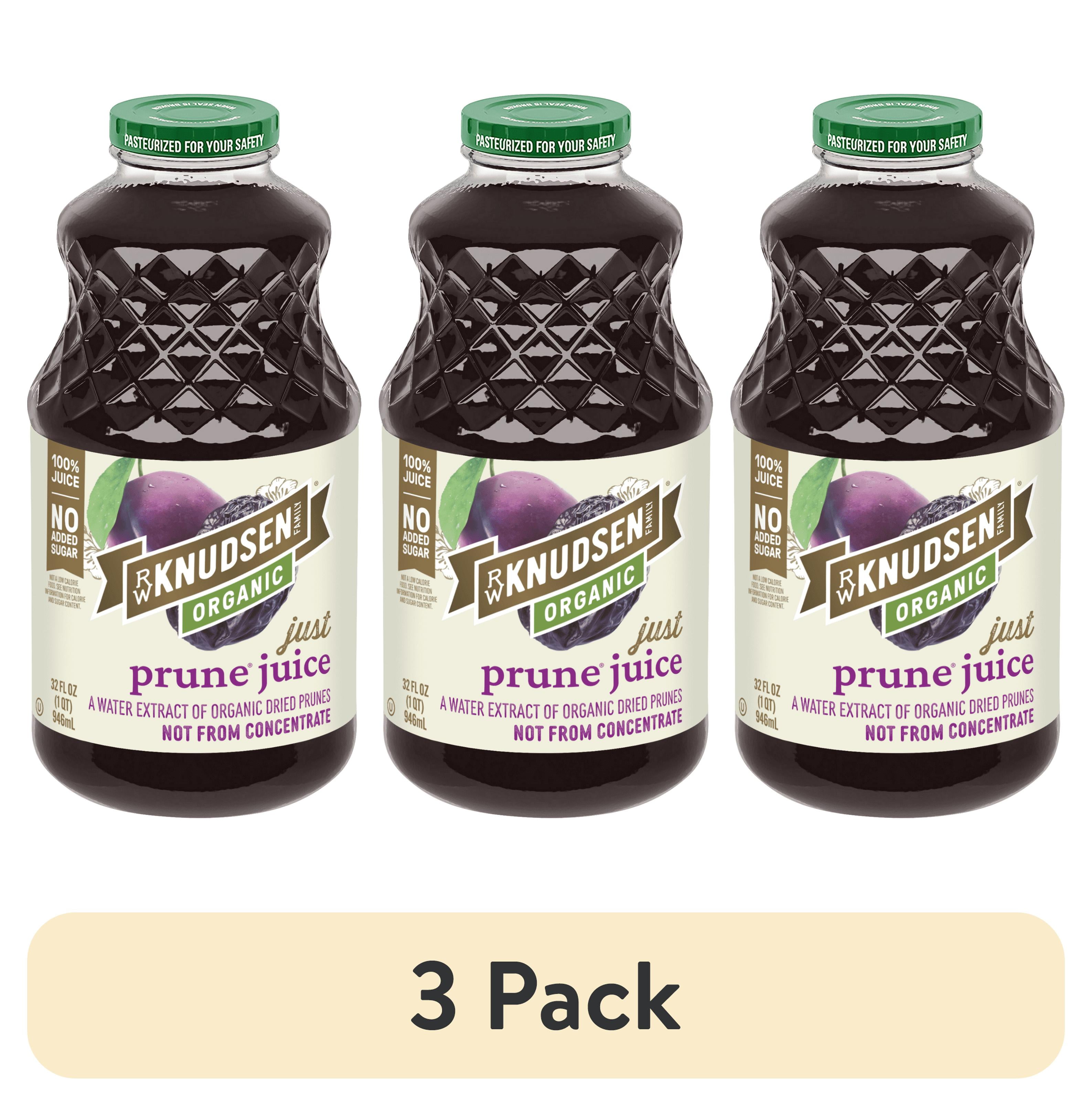 (3 pack) R.W. Knudsen Family Organic Just Prune Juice, 100% Juice, 32 oz, Glass Bottle, Shelf-Stable