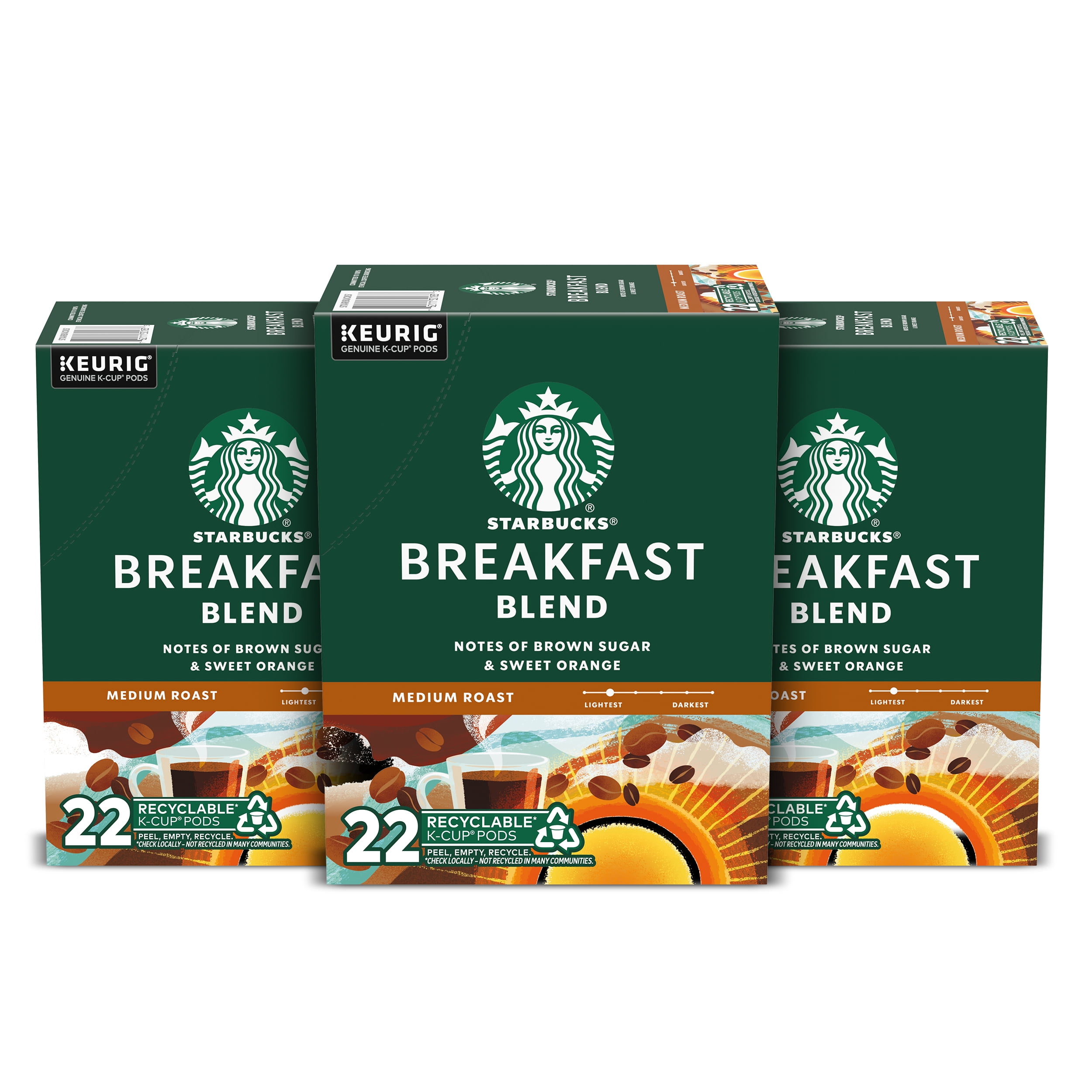 (3 pack) Starbucks Breakfast Blend, Medium Roast Coffee, Keurig K-Cup Single Serve Coffee Pods, 22 Count
