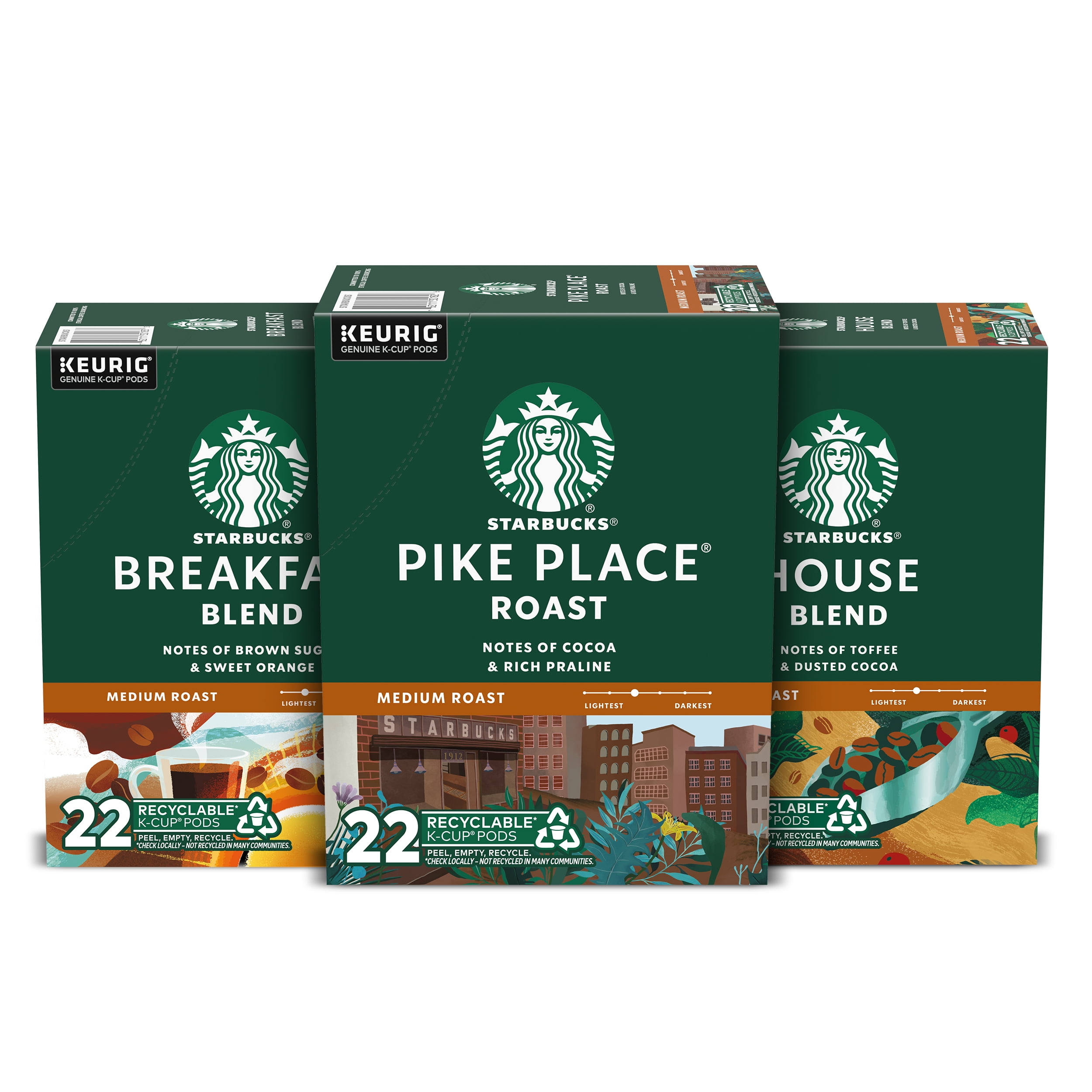 (3 pack) Starbucks Pike Place Roast, Medium Roast Keurig K-Cup Single Serve Coffee Pods, 22 Count