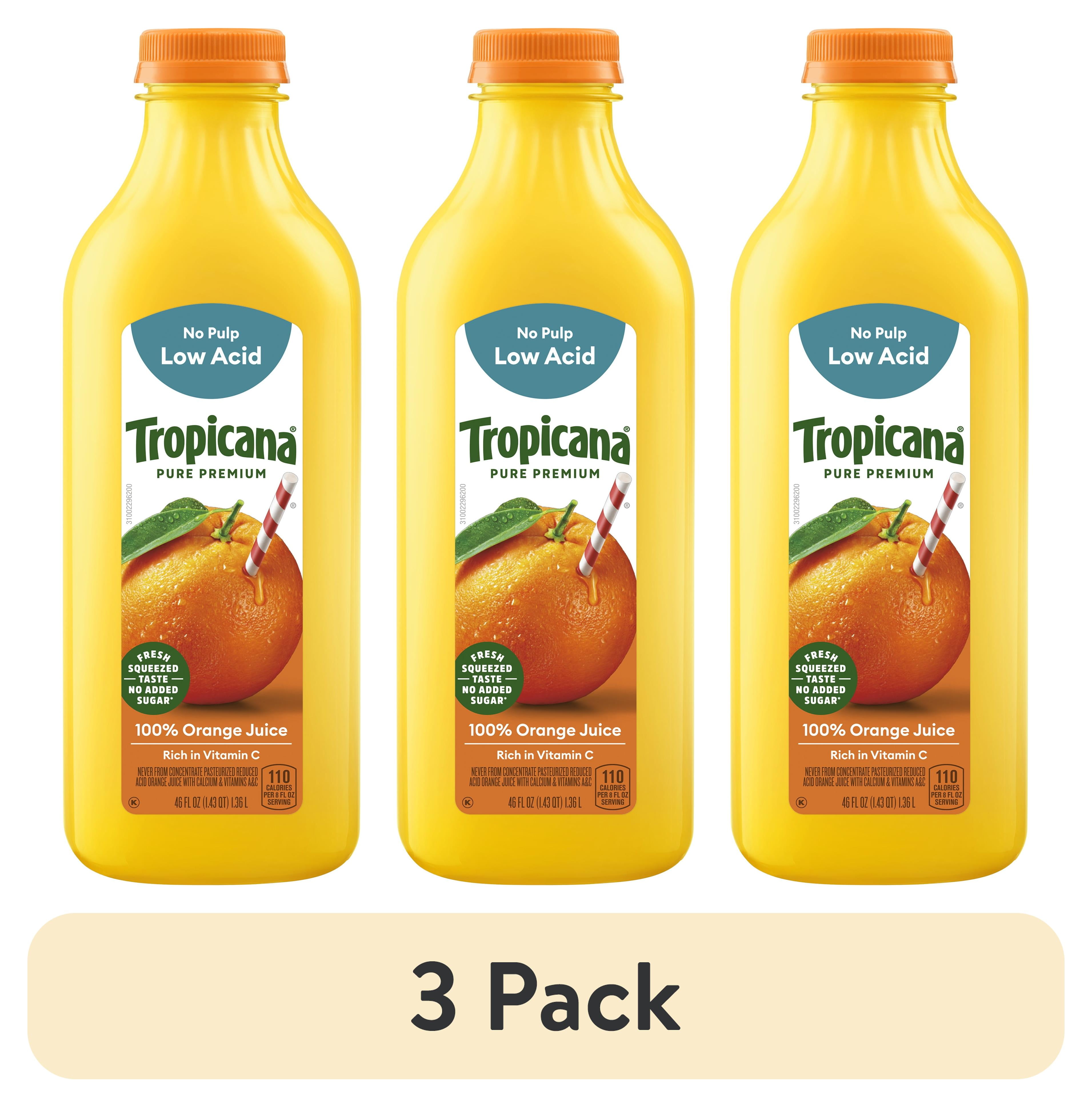 (3 pack) Tropicana Pure Premium 100% Orange Juice Original, No Pulp, Low Acid, 46 fl oz bottle