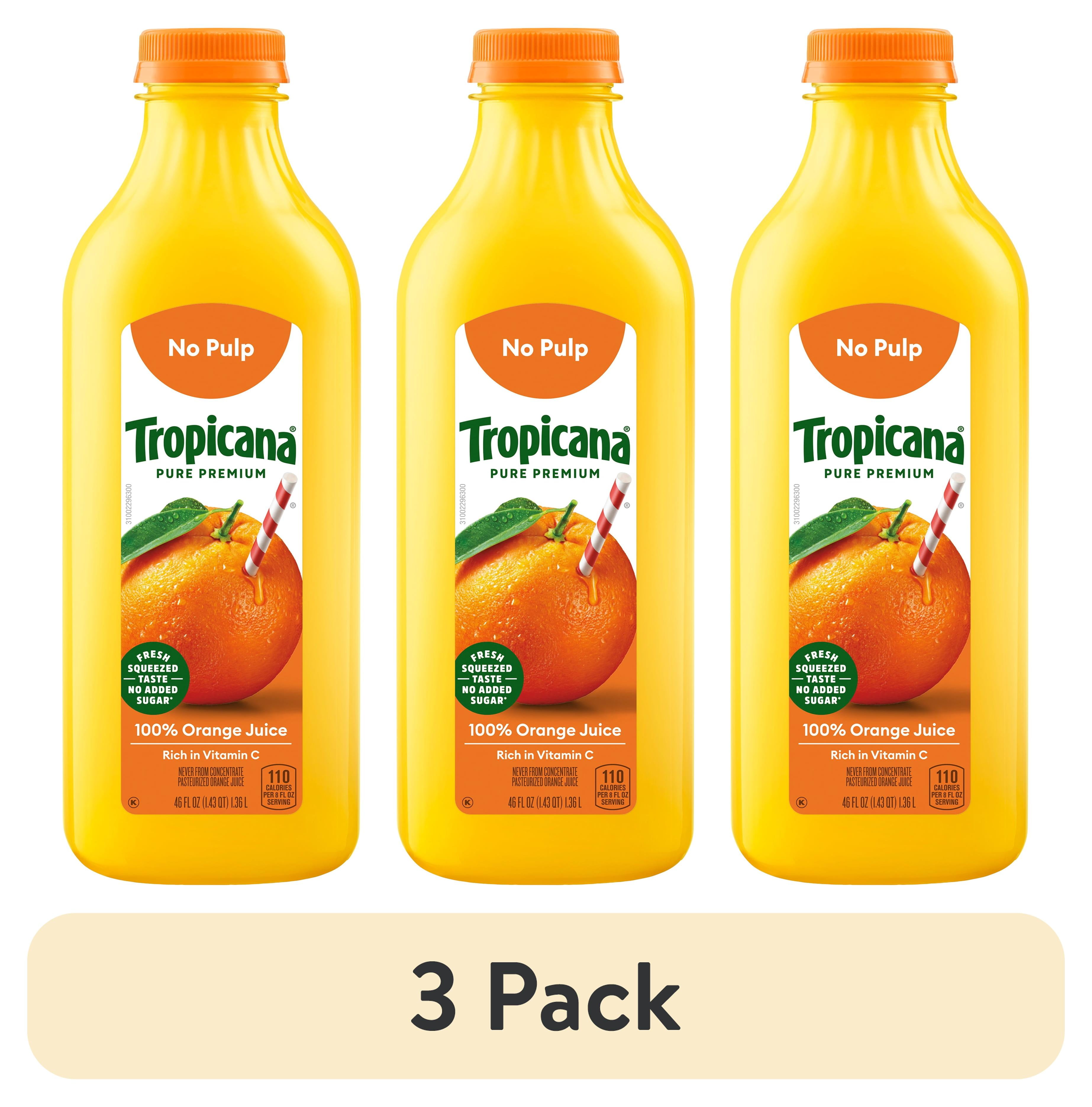 (3 pack) Tropicana Pure Premium 100% Orange Juice Original, No Pulp, No Sugar Added, 46 fl oz