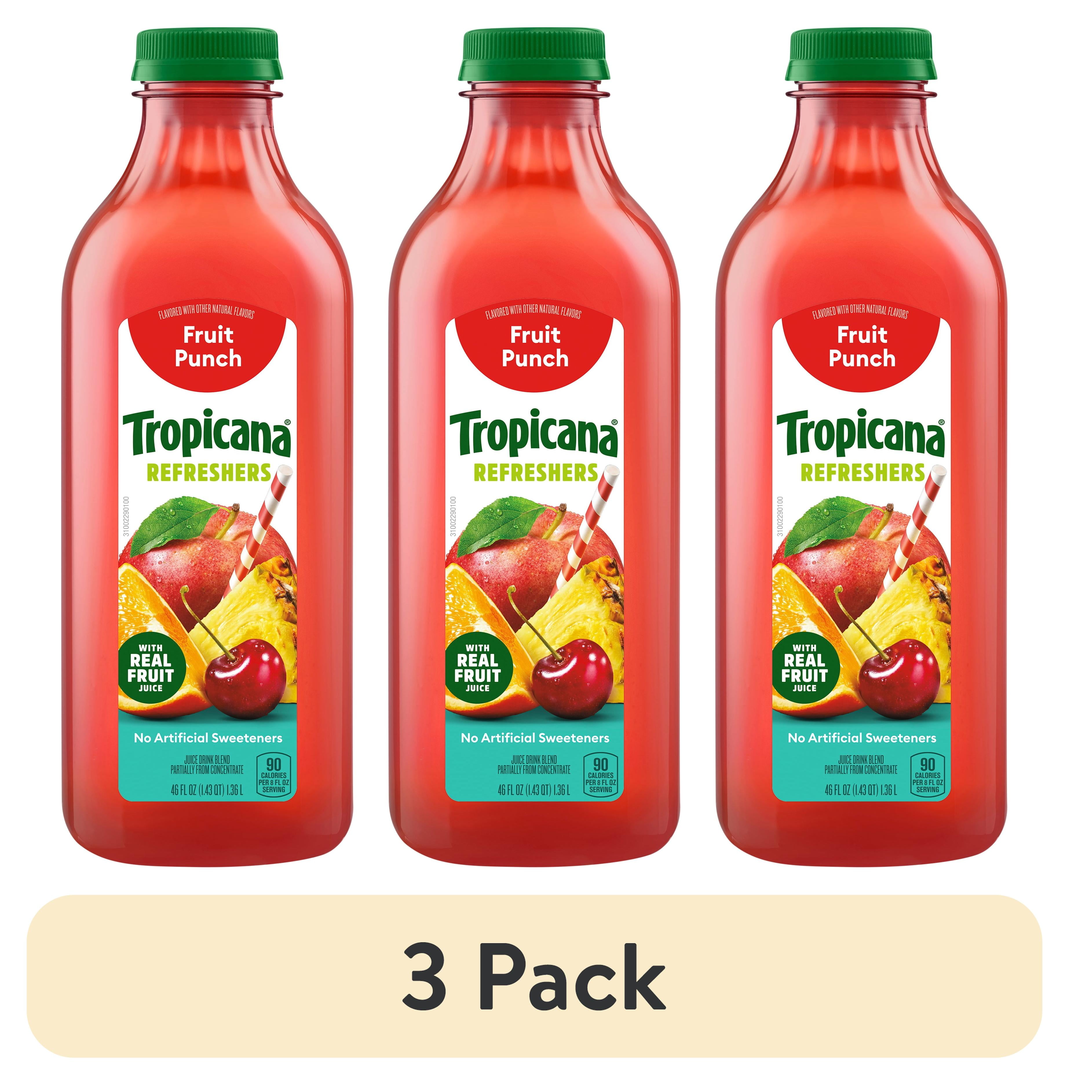 (3 pack) Tropicana Refreshers Fruit Punch Juice Drink, with Real Fruit Juice, 46 fl oz Bottle