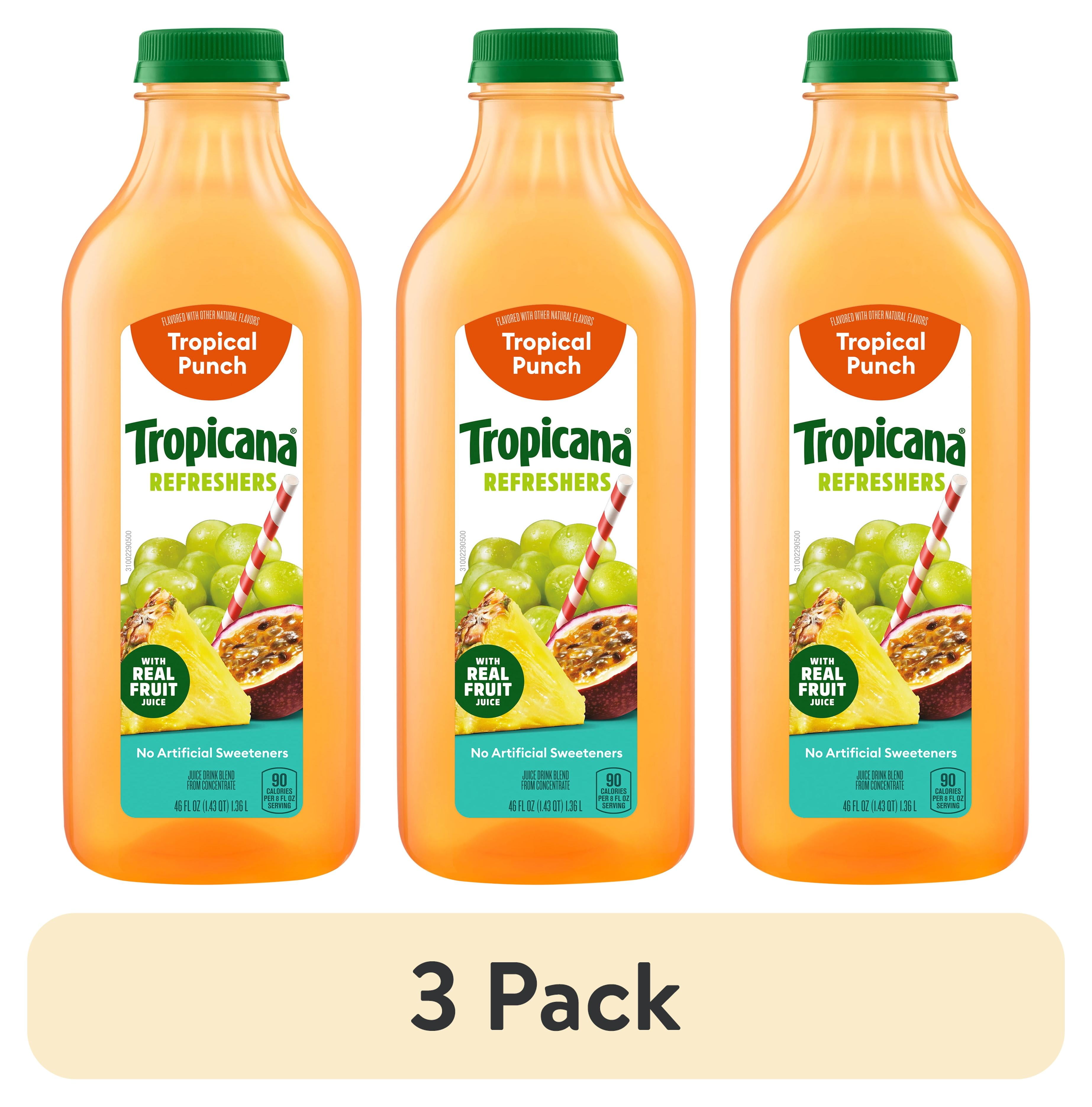 (3 pack) Tropicana Refreshers Tropical Punch Juice Drink, with Real Fruit Juice, 46 fl oz Bottle