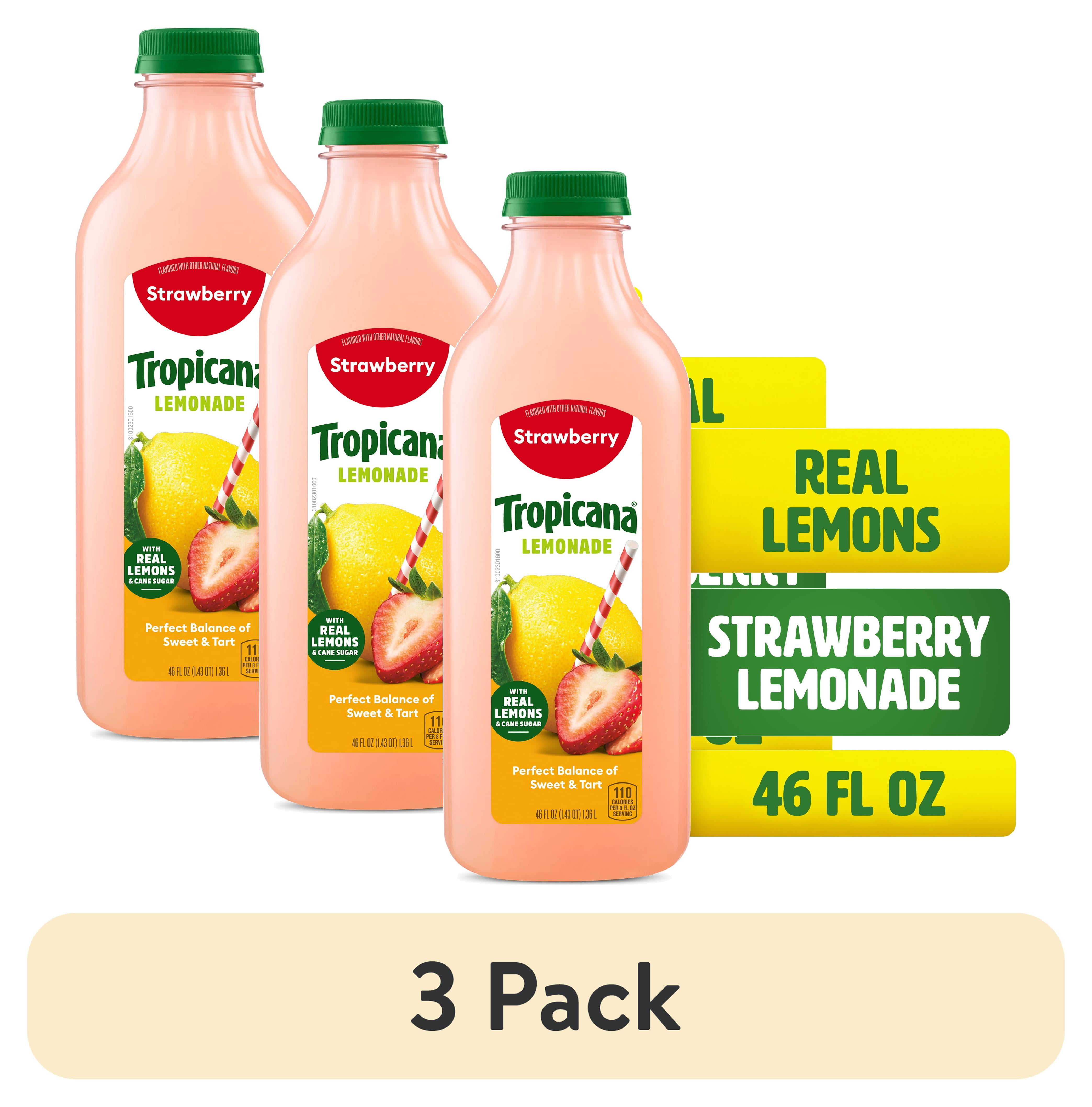(3 pack) Tropicana Strawberry Lemonade, Made with Real Lemons, 46 fl oz Bottle