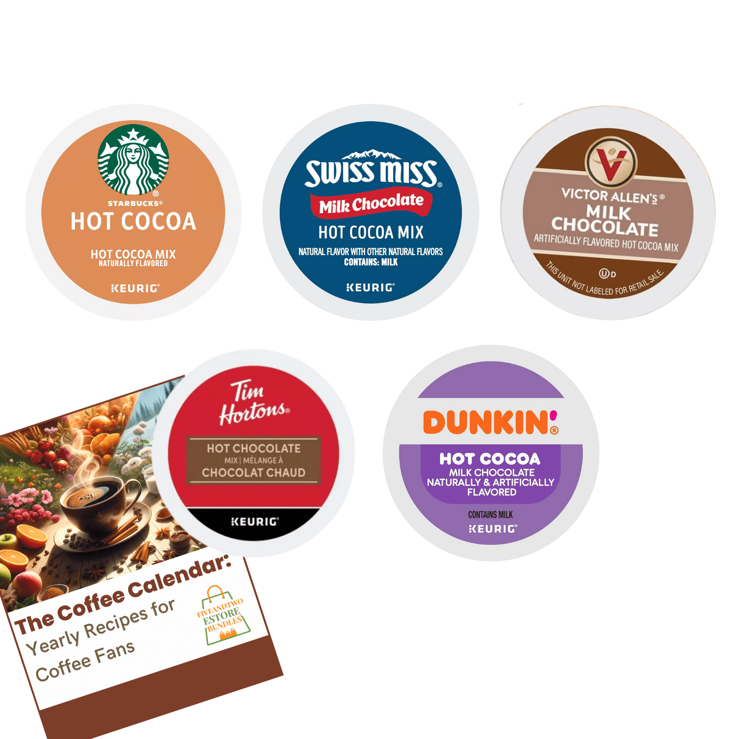 30-Count-5 Flavor Hot Chocolate K-Cups Variety Pack: Swiss Miss & Victor Allen, Tim Hortons Milk Chocolate Pods, Starbucks& Dunkin Hot Cocoa K Cups, for Keurig Machines Includes Recipe eBook