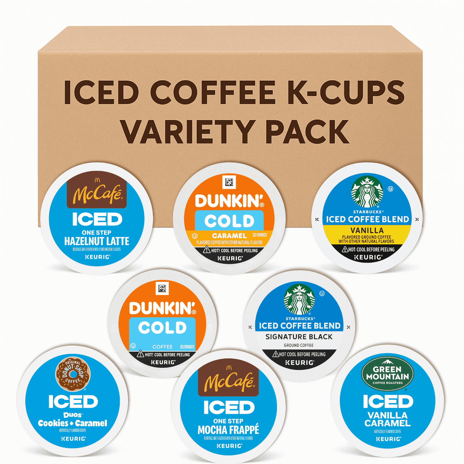 30-Count Cold Brew& Iced Coffee K-Cup Pods Variety Pack: Starbucks, McCafe, Dunkin, Green Mountain, Donut Shop - Signature Black, Vanilla, Hazelnut Latte,Mocha Frappe, Caramel Coffee