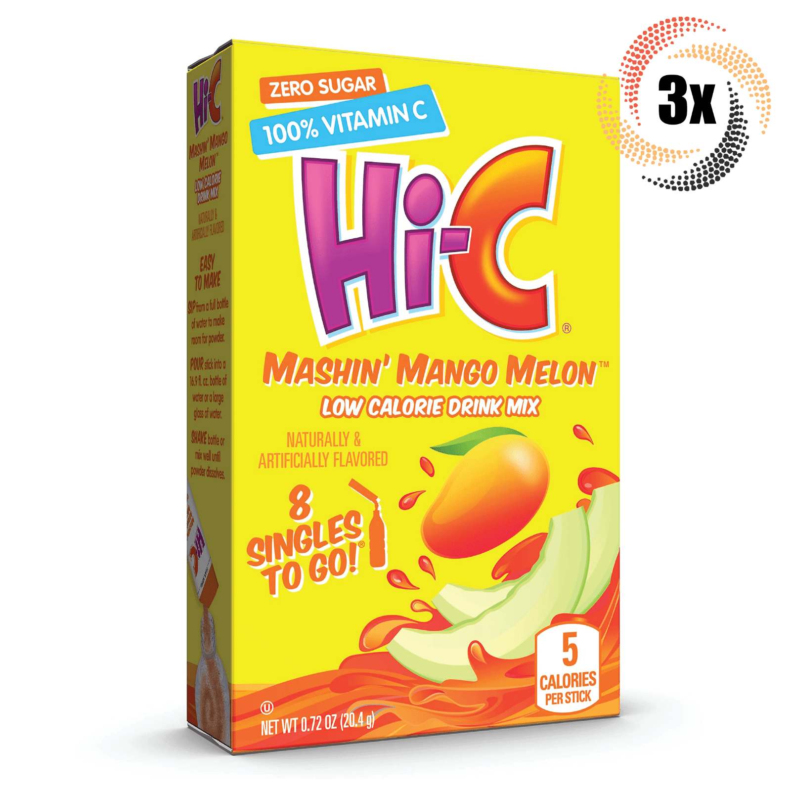 3x Packs Hi-C Singles To Go Mashin' Mango Melon Drink Mix 8 Singles Each .72oz