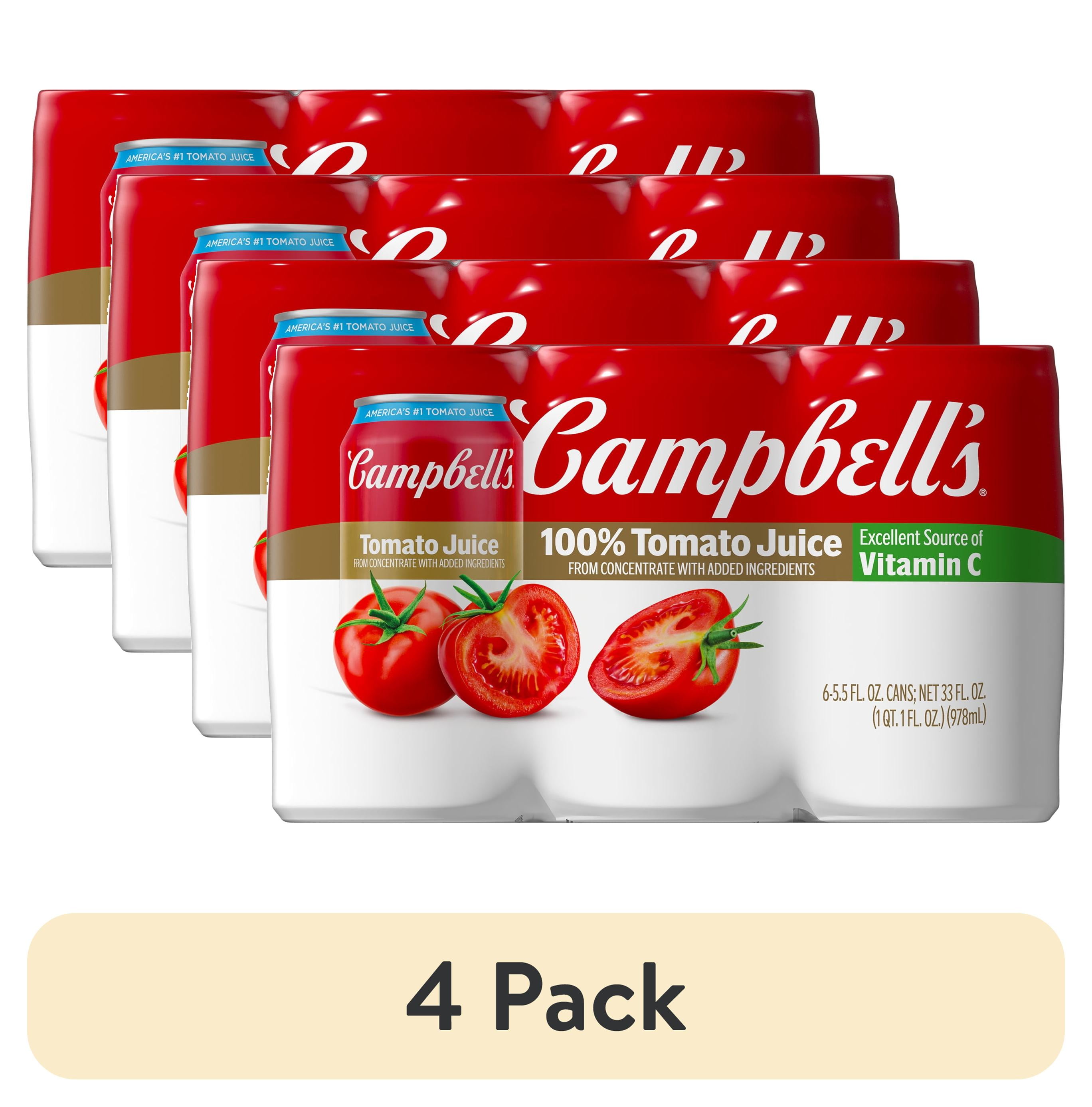 (4 pack) Campbell's 100% Tomato Juice, 5.5 fl oz Can, 6 Count