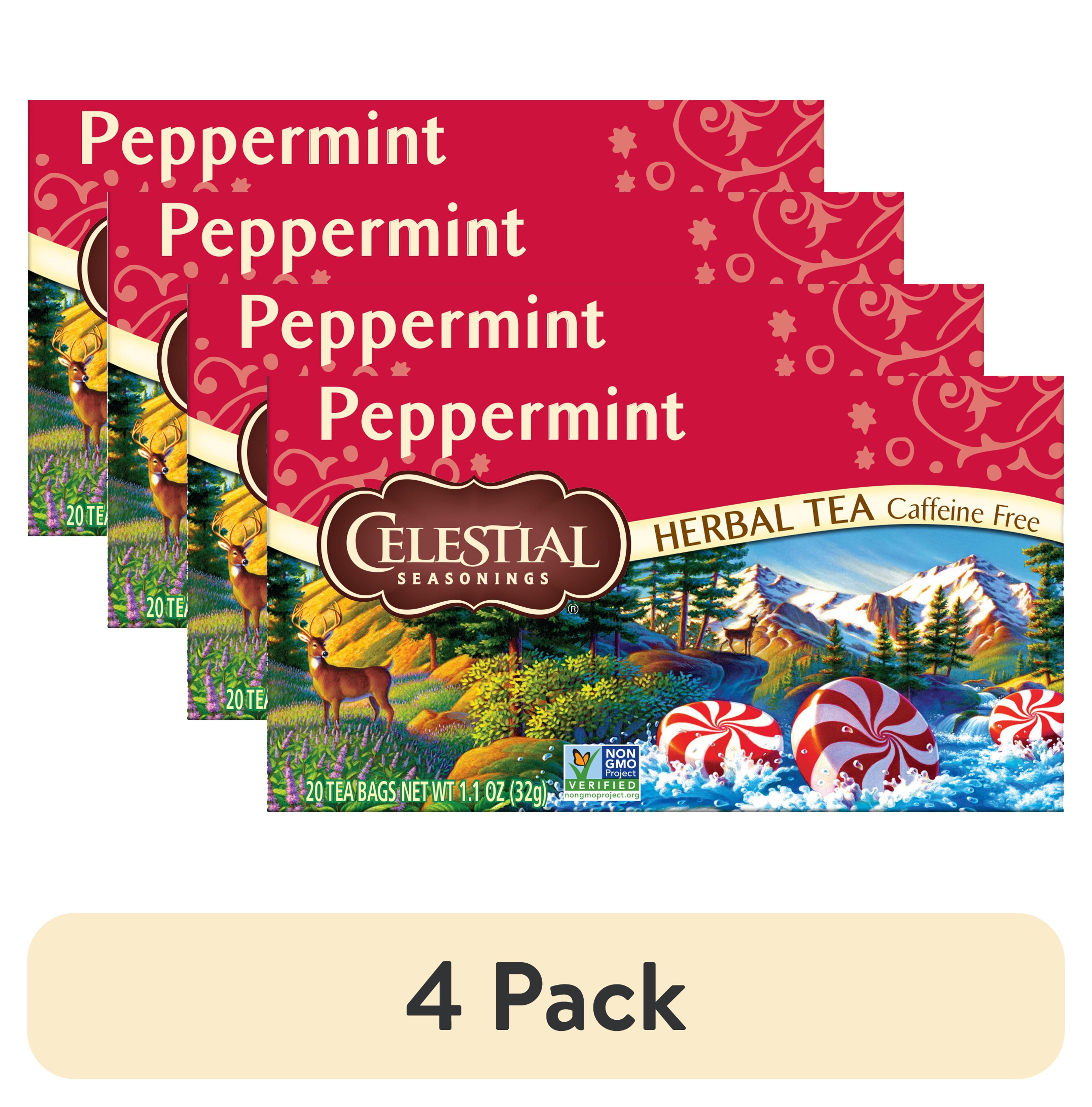 (4 pack) Celestial Seasonings Peppermint Caffeine-Free Herbal Tea Bags (20 Count)