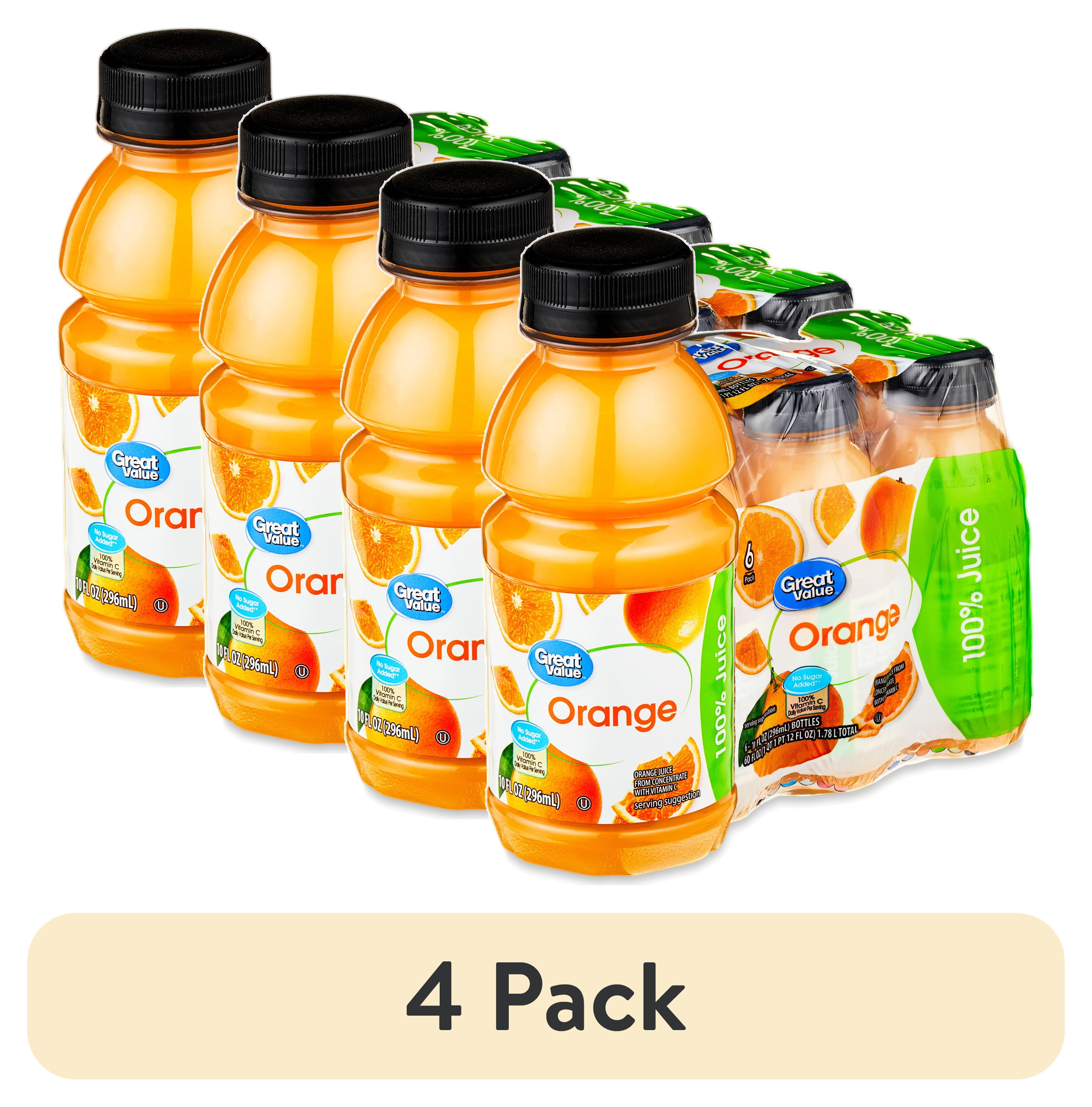 (4 pack) Great Value 100% Orange Juice, 10 fl oz, 6 Count