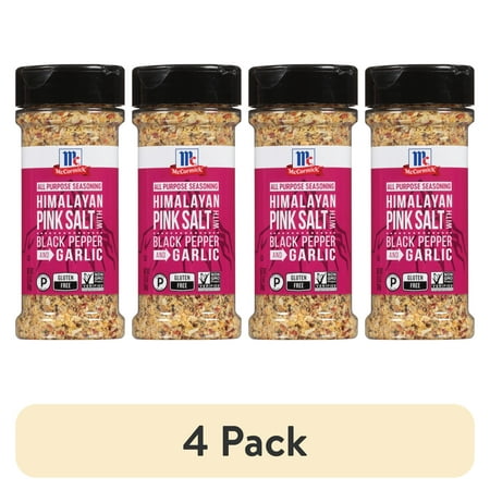 (4 pack) McCormick Gluten Free Himalayan Pink Salt with Black Pepper and Garlic All Purpose Seasoning, 6.5 oz Bottle