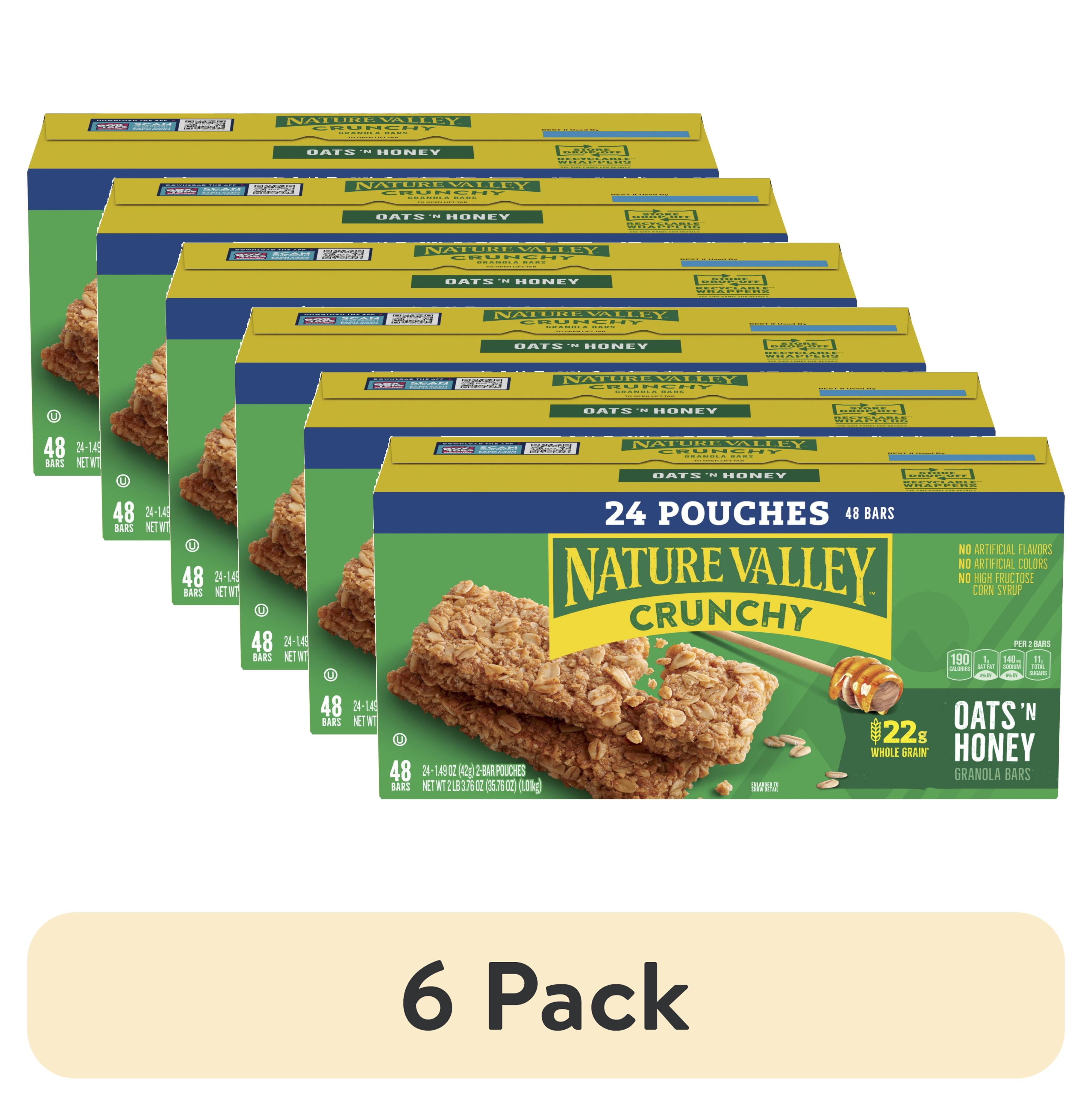 (6 pack) Nature Valley Crunchy Granola Bars, Oats 'n Honey, 48 Bars, 35.76 oz (24 Pouches)