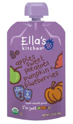 (6 Pouches) Ella's Kitchen Organic 6+ Months Baby Food, Apples Sweet Potatoes Pumpkin and Blueberries, 3.5 Ounce