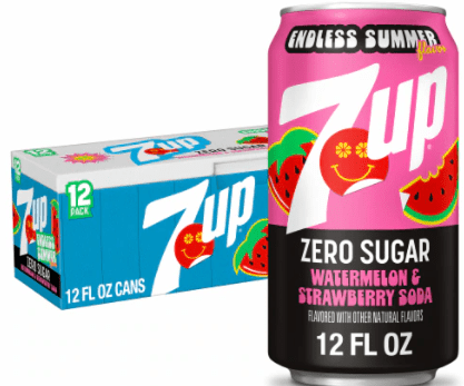 7 UP Watermelon & Strawberry Endless Summer Flavor Zero Sugar 12 oz 12 pk