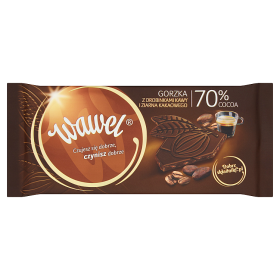COCOA MASS, SUGAR, FAT REDUCED COCOA POWDER, COCOA BUTTER, COFFEE BEANS 3%, COCOA NIBS 2%, EMULSIFIER: LECITHINS (SOYA). DARK CHOCOLATE: COCOA SOLIDS MINIMUM 70%.