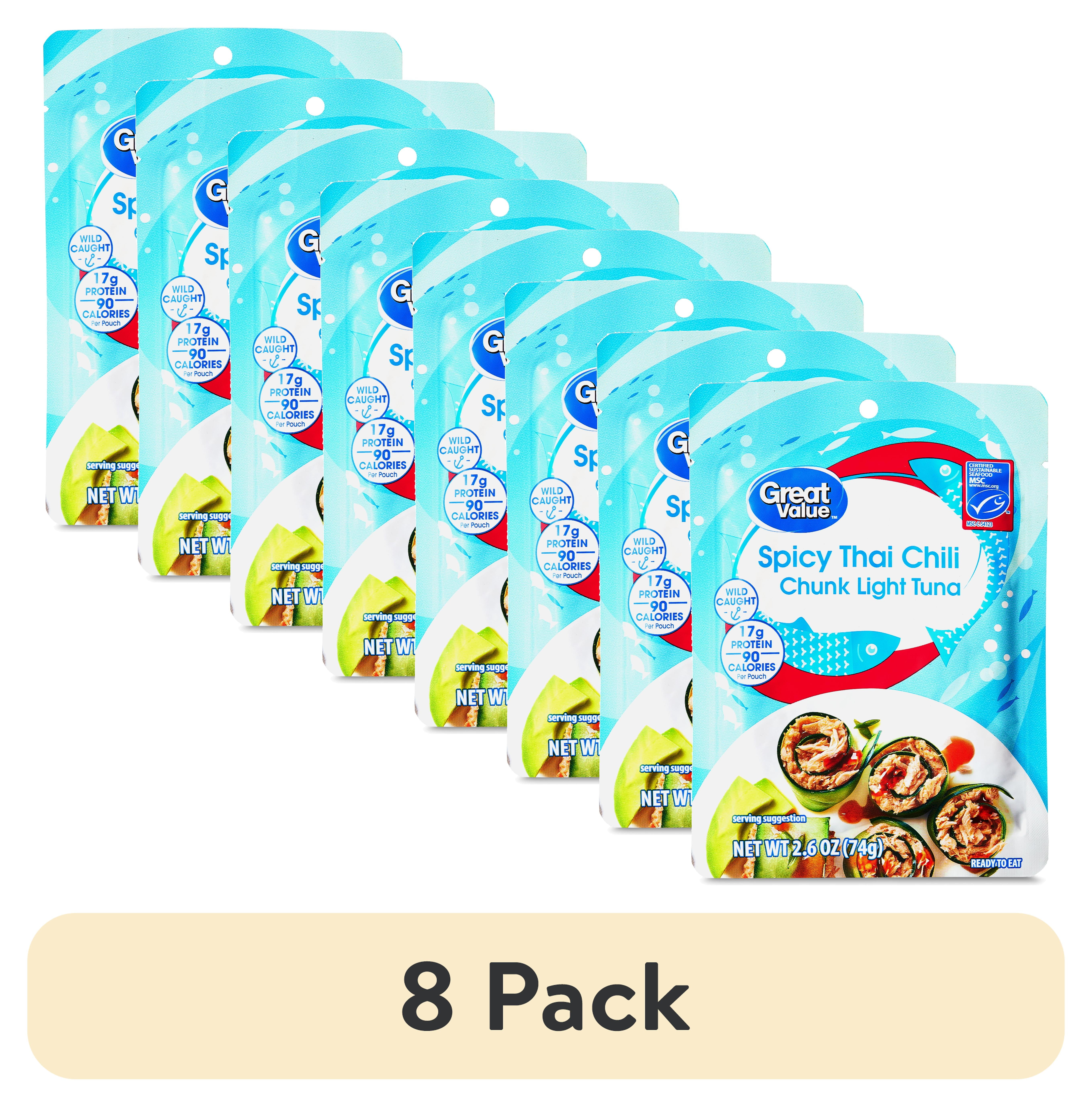 (8 pack) Great Value Spicy Thai Chili Chunk Light Tuna, 2.6 oz Pouch