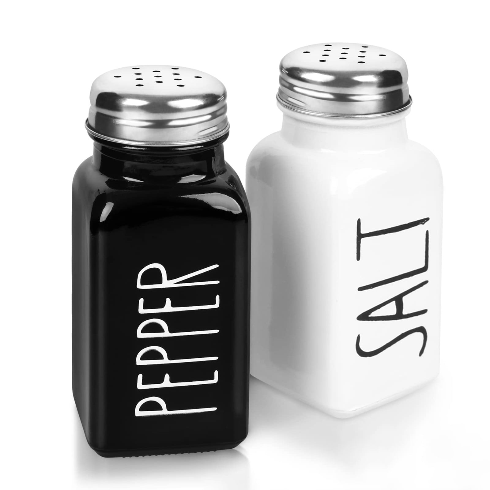 Acdanc 2 Pcs Salt and Pepper Shakers,High-Quality Glass Salt and Pepper Shakers, Seasoning Containers Classic Black and White Design