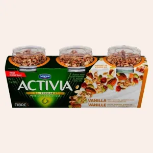 Activia Probiotic Yogurt with Fibre, Vanilla Flavour with oats, almonds, pumpkin seeds and dried cranberries, 150g (Pack of 3)
