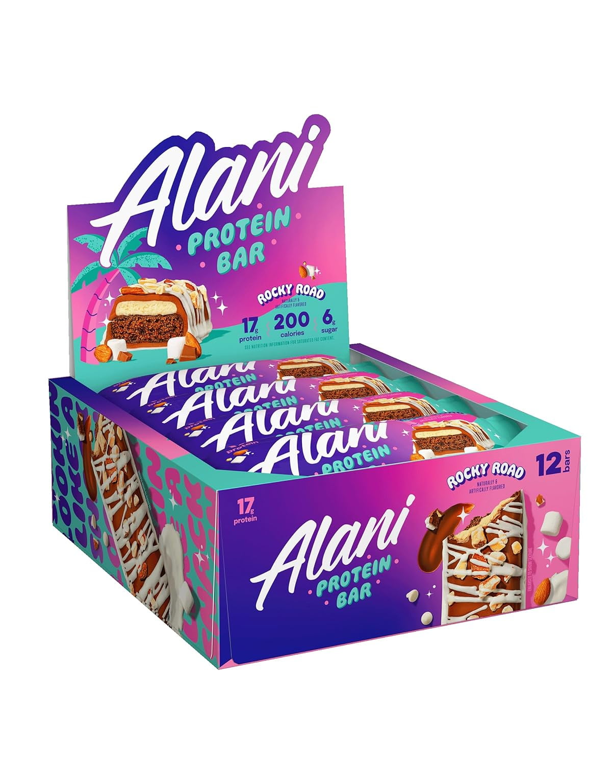 Alani Nu Protein Bars ROCKY ROAD | High Protein Gluten-Free Bars | 16g Protein | Low-Sugar (7G) Low-Carb Healthy Snacks | 12 Individually Wrapped Bars