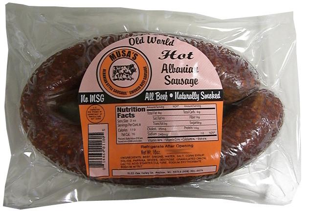 Albanian Style HOT Sausage (Musas) 16 oz (1lb)