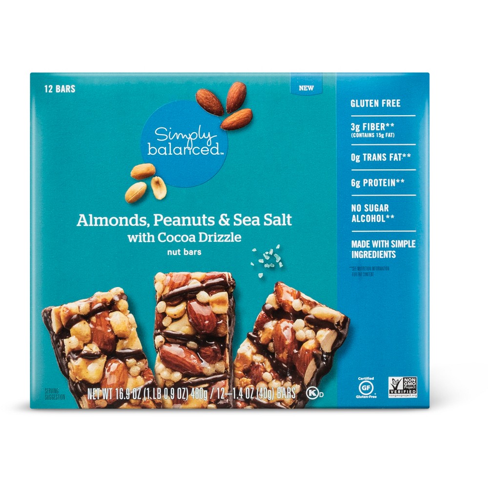 ALMONDS, PEANUTS & SEA SALT WITH COCOA DRIZZLE NUT BARS, ALMONDS, PEANUTS & SEA SALT WITH DRIZZLE