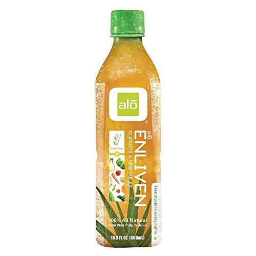 WATER, VEGETABLE AND FRUIT JUICE FROM CONCENTRATE (INCLUDING BROCCOLI, CABBAGE, CELERY, SPINACH, PASSION FRUIT, CARROT, GRAPE, PINEAPPLE, LEMON, APPLE, ORANGE, STRAWBERRY), ALOE VERA JUICE, ALOE VERA PULP, CANE SUGAR, CITRIC ACID, ASCORBIC ACID, NATURAL FLAVORS