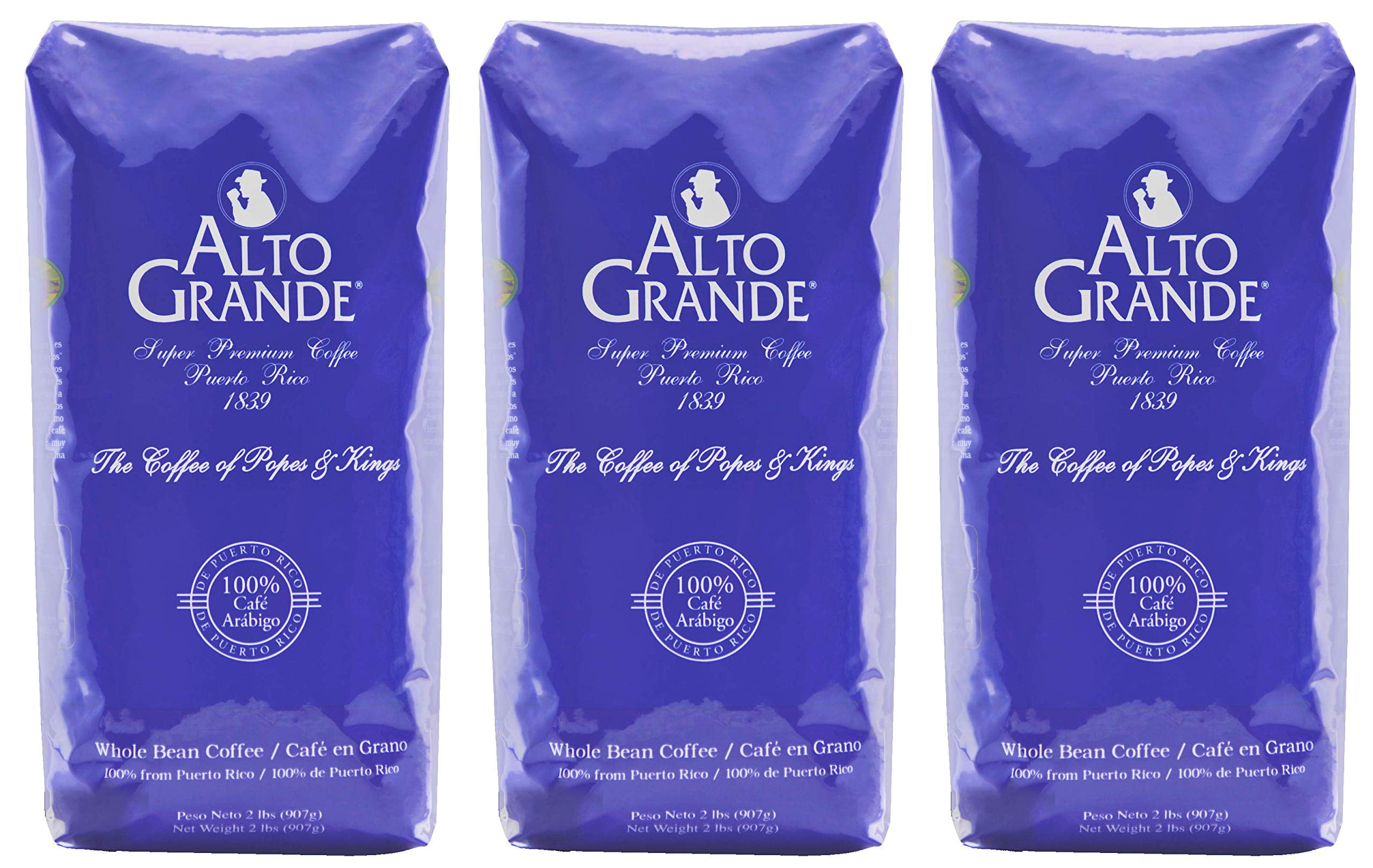 Alto Grande Super Premium Coffee Beans, 100 Percent Puerto Rico Arabica, Medium Dark Roast, Whole Bean, 2 Pound (Pack of 3)