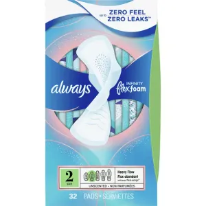 Always Infinity FlexFoam Pads for Women, Size 2, Super Absorbency, Unscented, 32 Count