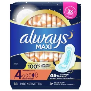 Always Maxi Pads Size 4 Overnight Absorbency Unscented with Wings