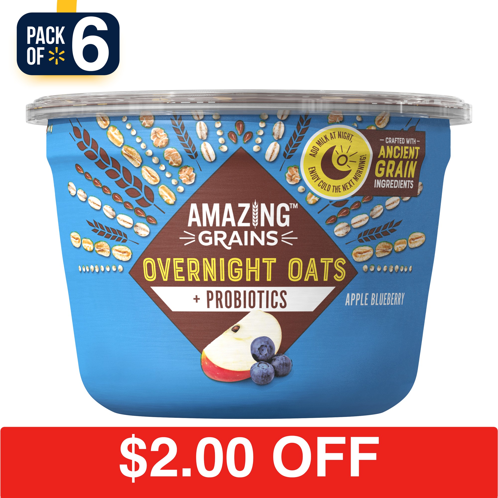 Amazing Grains, Overnight Oatmeal Cups, Blueberry Apple with Probiotics, 6 Cups (2.2 oz Cup)