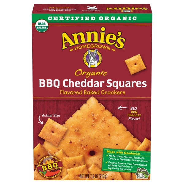 Annies Homegrown Crackers Organic Baked Flavored BBQ Cheddar Squares Box - 7.5 Oz is available at 1 retailer