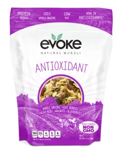 ANTIOXIDANT WHOLE GRAINS, GOJI BERRIES, CACAO NIBS, WALNUTS, BLUEBERRIES NATURAL MUESLI, ANTIOXIDANT