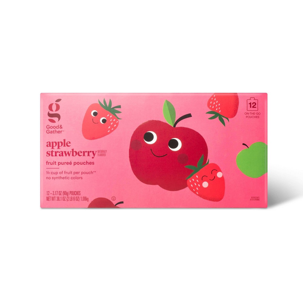 APPLE STRAWBERRY FLAVORED FRUIT PUREE POUCHES, APPLE STRAWBERRY