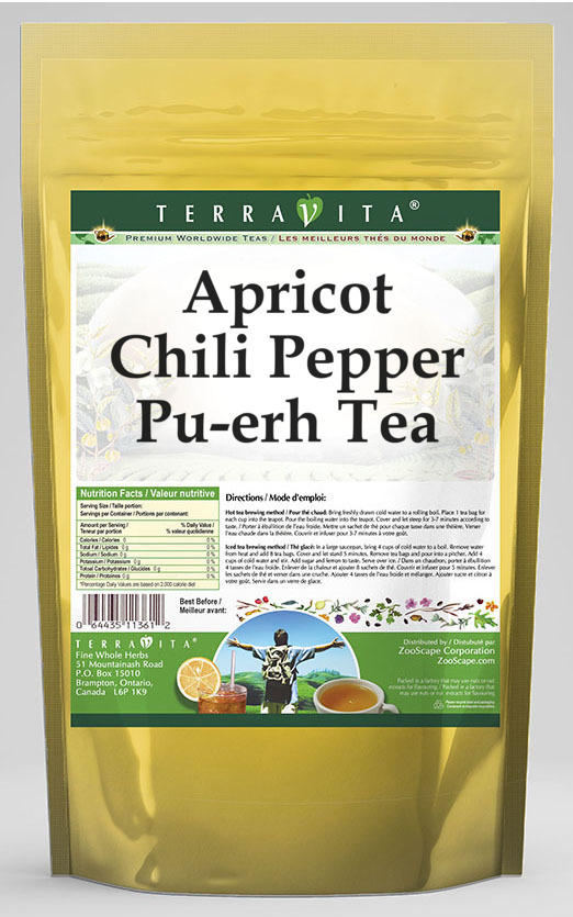 Apricots (Dried), Chili Flakes, Cinnamon Chips, Natural Flavors, Pu-erh Tea