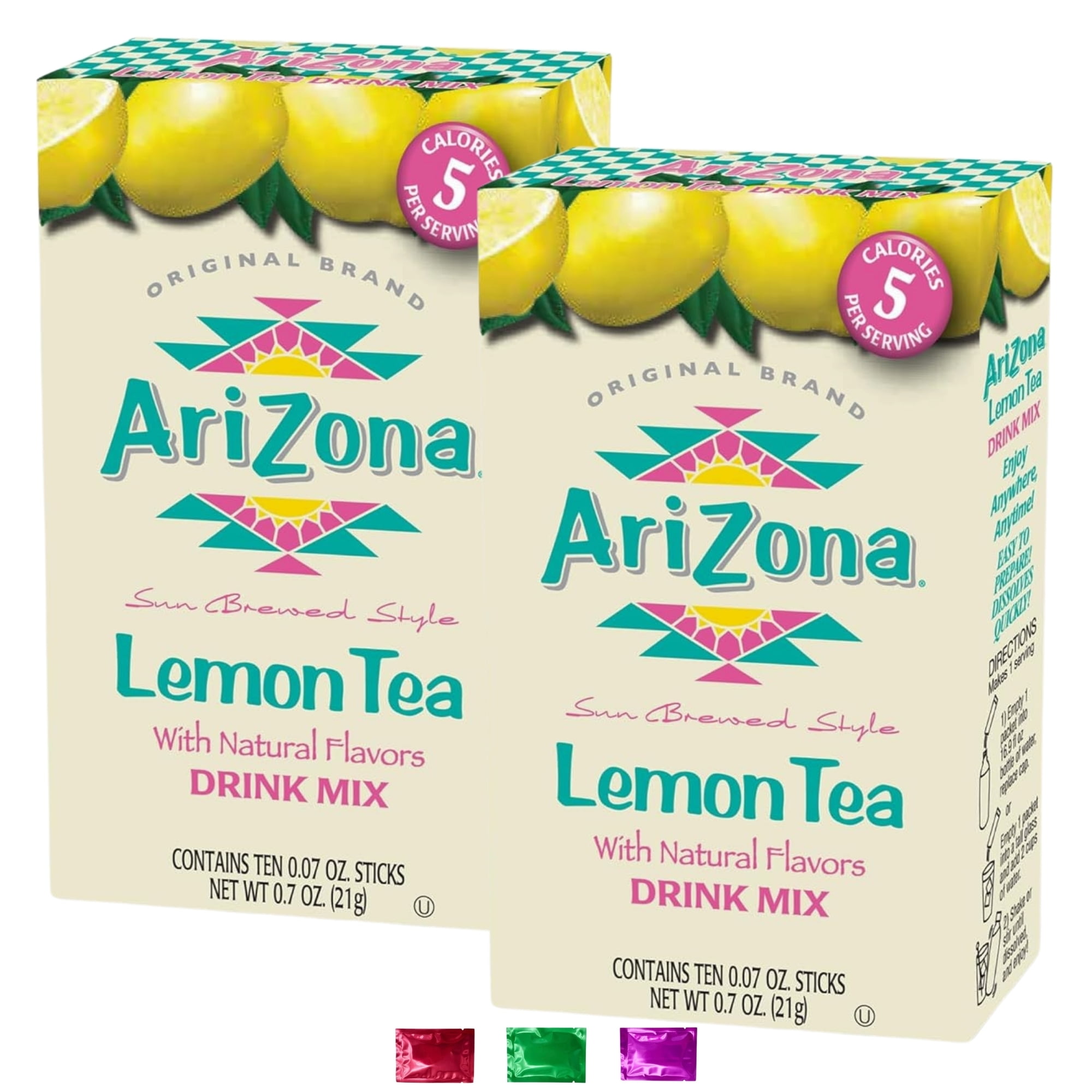Arizona Lemon Tea Powdered Drink Mix 20 Packets Total, Flavored Drink Mix for Water Bottles, Gym Travel Outdoor Activities Hydration Refreshment Beverage Pack of 2 w/ Bonus Snoep in Beperkte Oplage